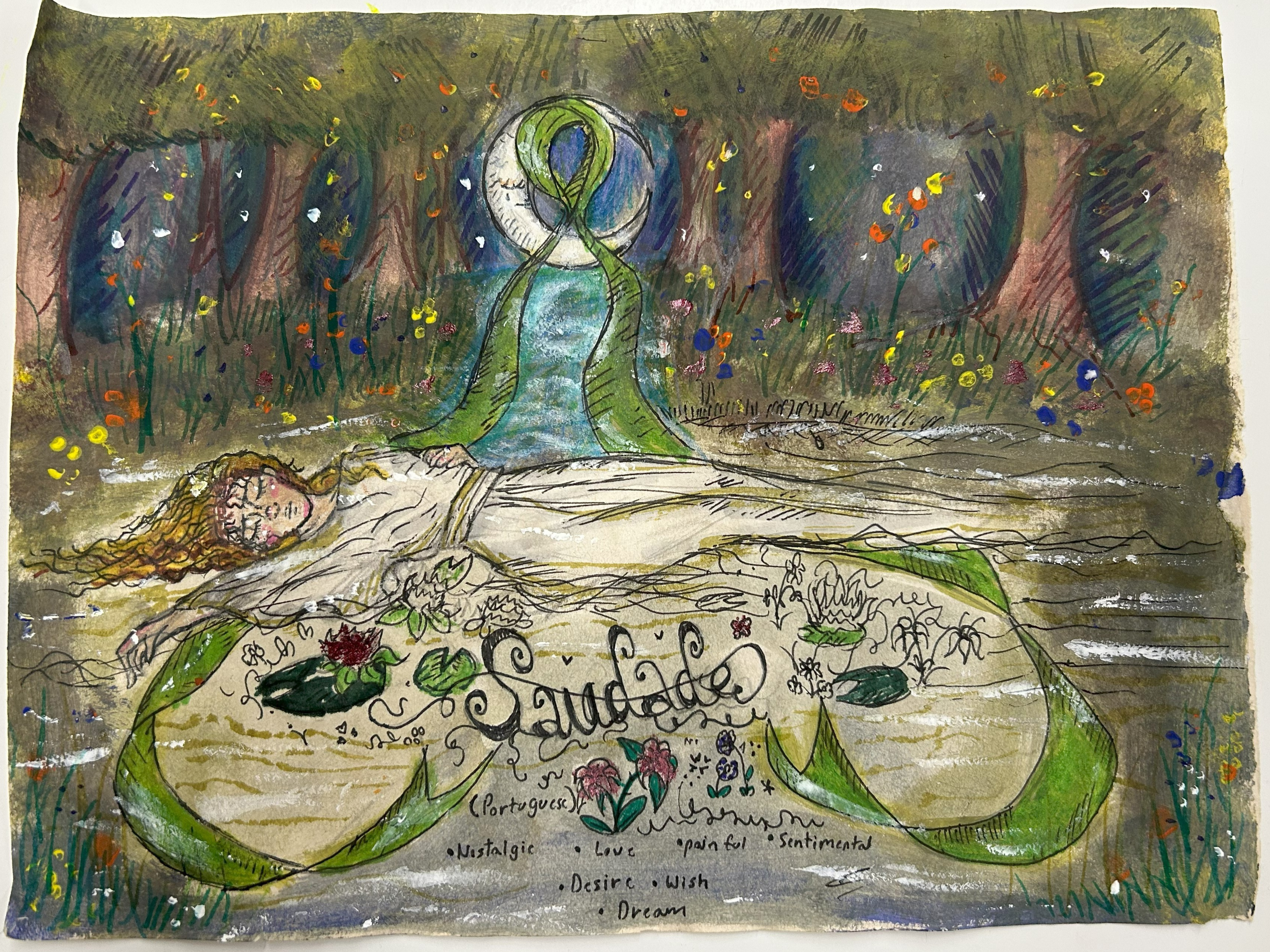 My painting centers on the emotional concept of saudade – a profound, nostalgic feeling, which is conveyed through the image of a woman lying on a lake filled with beautiful ...
