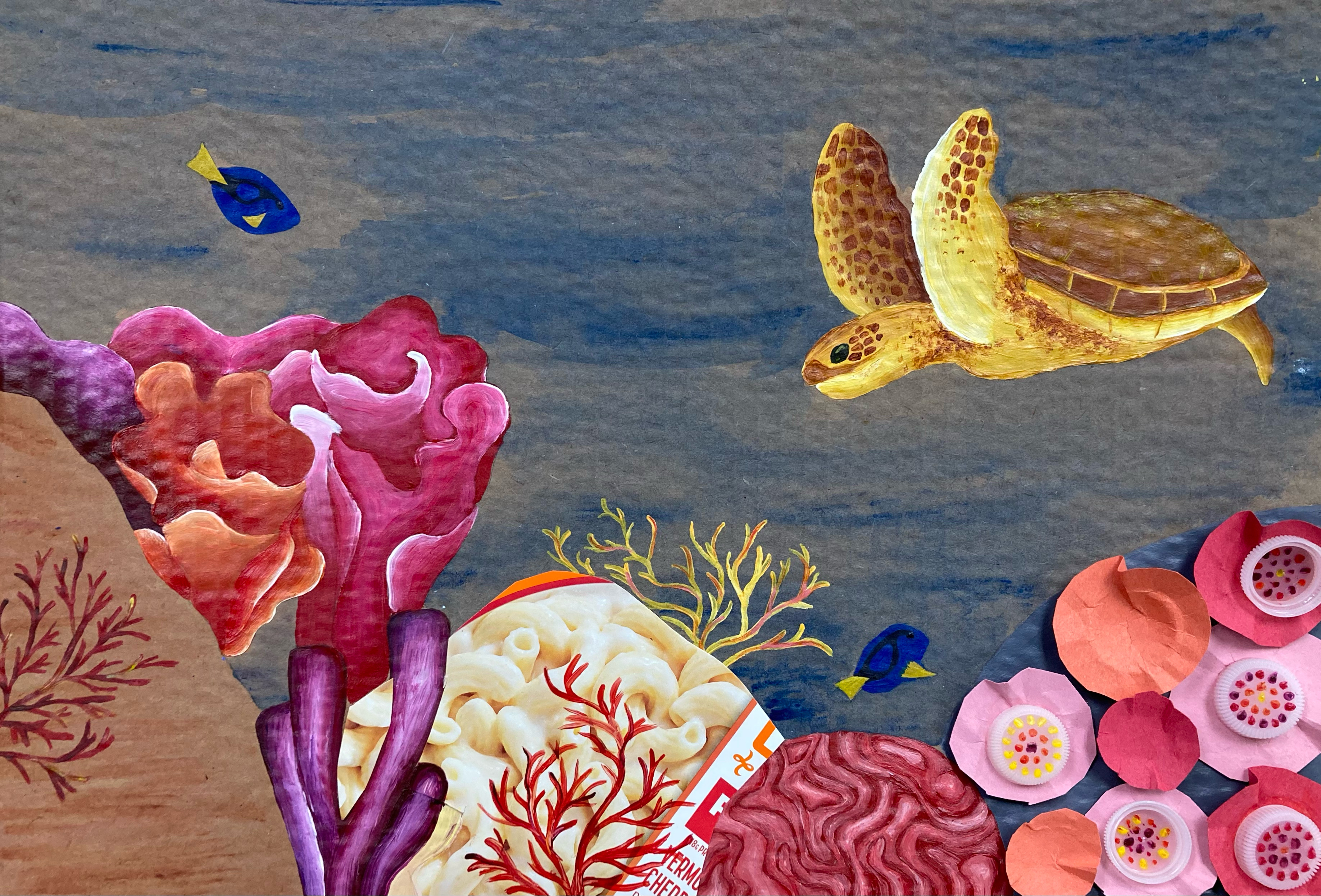 To the viewers of my artwork, I’d like for everyone to take a first glance, and see a coral reef. Then, I want the viewers to look closer, and see …