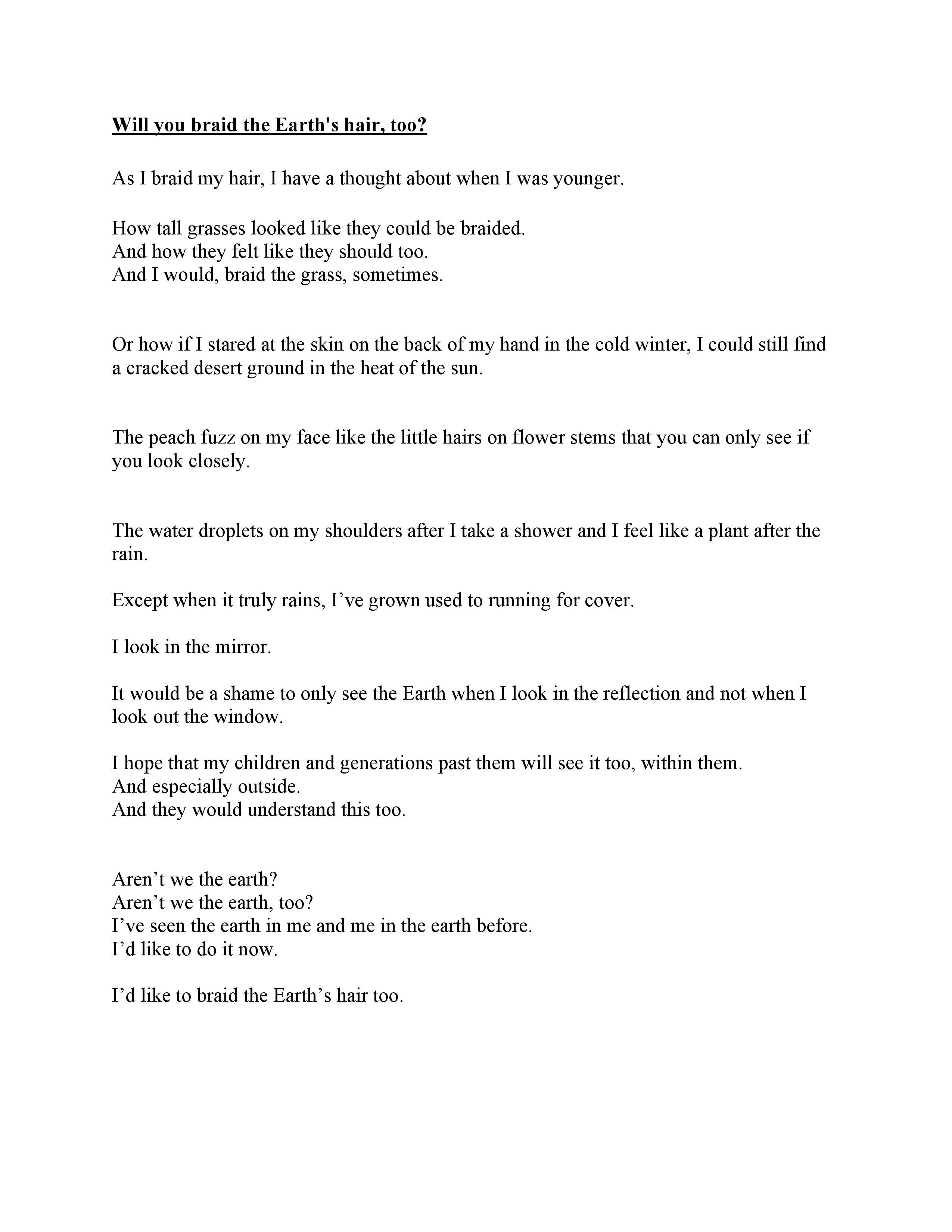 This piece is a celebration of Earth and our relationship with it. Our relationship to the Earth is integral to how we can hope for better and even do better– …