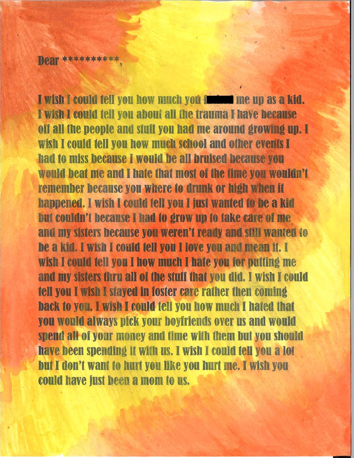 This submission is a letter showing love to my family. It also shows them where I am with my mental health.