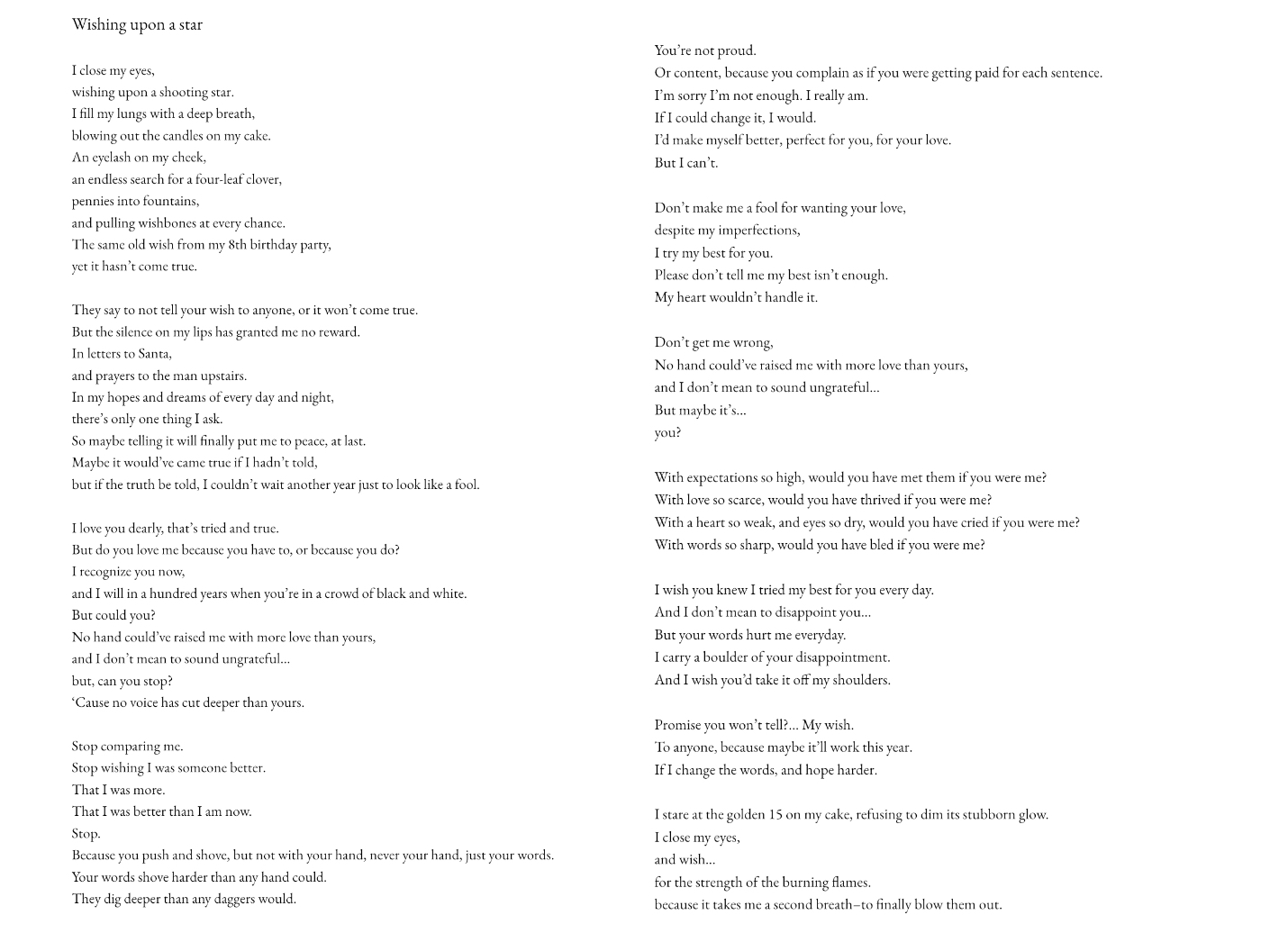 - Third Place Monthly Prompt (Middle School): “What I Wish You Knew” by Gurneet Kaur