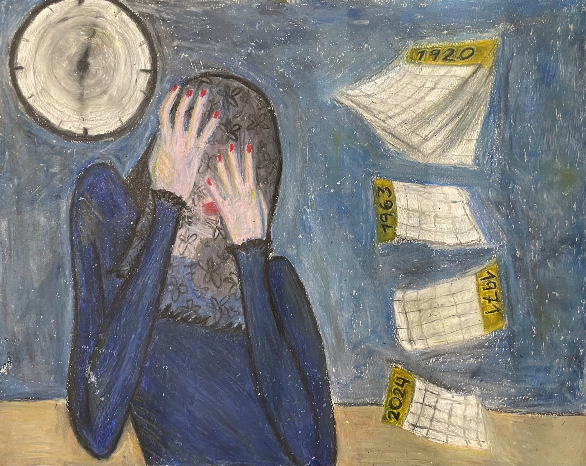 My piece is about the feeling of societal regression and the fear of losing safety and human rights.