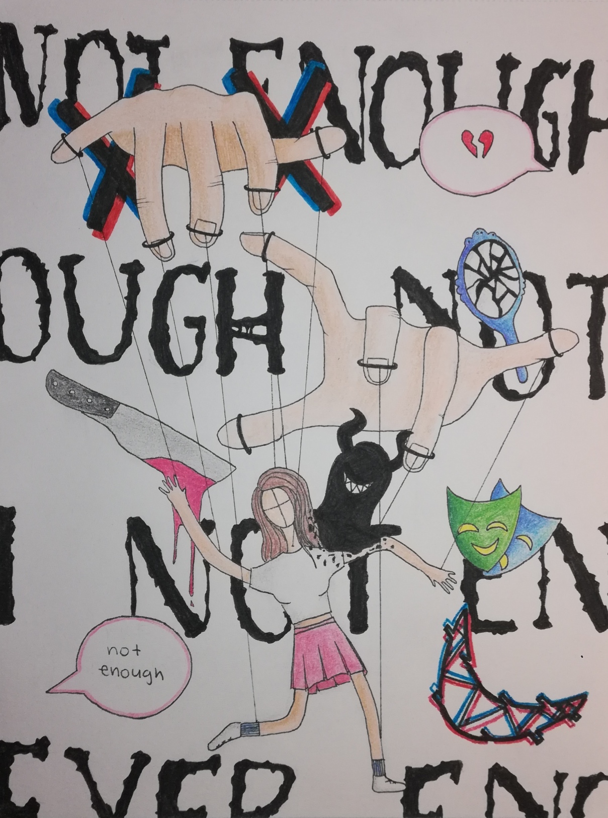 In this entry, I was hoping to convey a sense of anxiety, struggle, and the difficulty of maintaining a facade of happiness despite inner turmoil. I wanted to show different ...