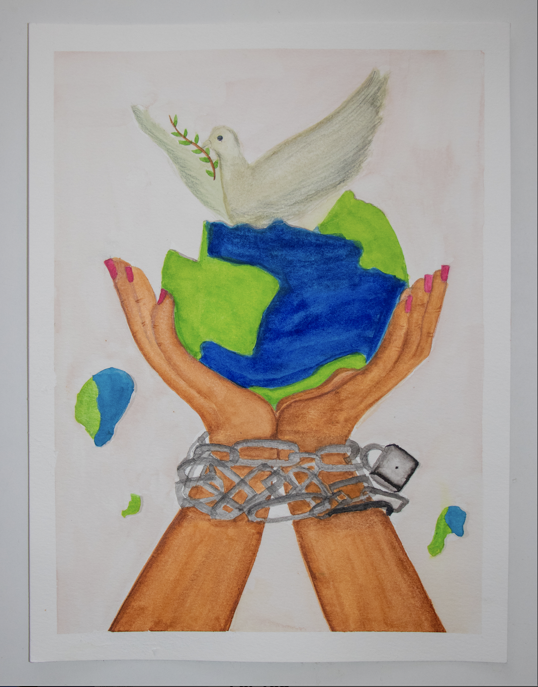 My painting shows the injustice within the world and a dove is blooming out of the center of the earth. People are kind people as long as we try to ...