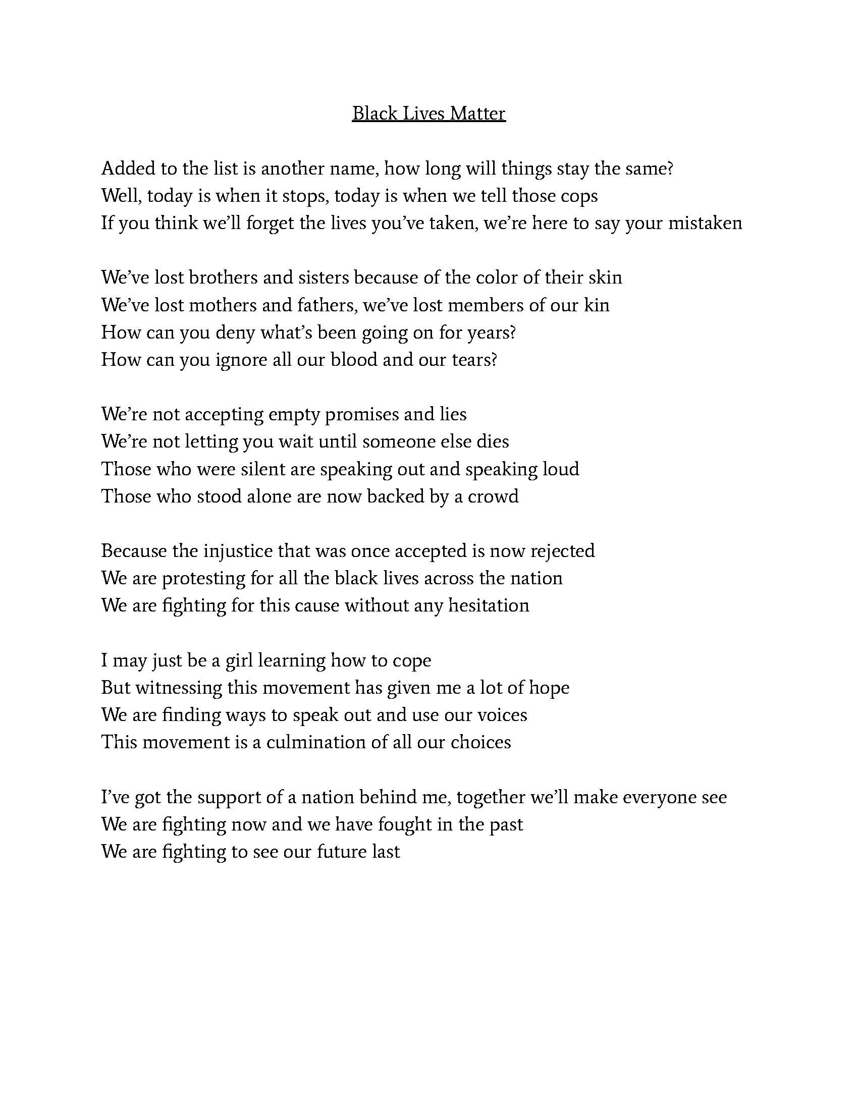 Every human being in the year 2020 has felt the wide effects of injustice and hopelessness, and I wanted to write something that I can look look back on if ...