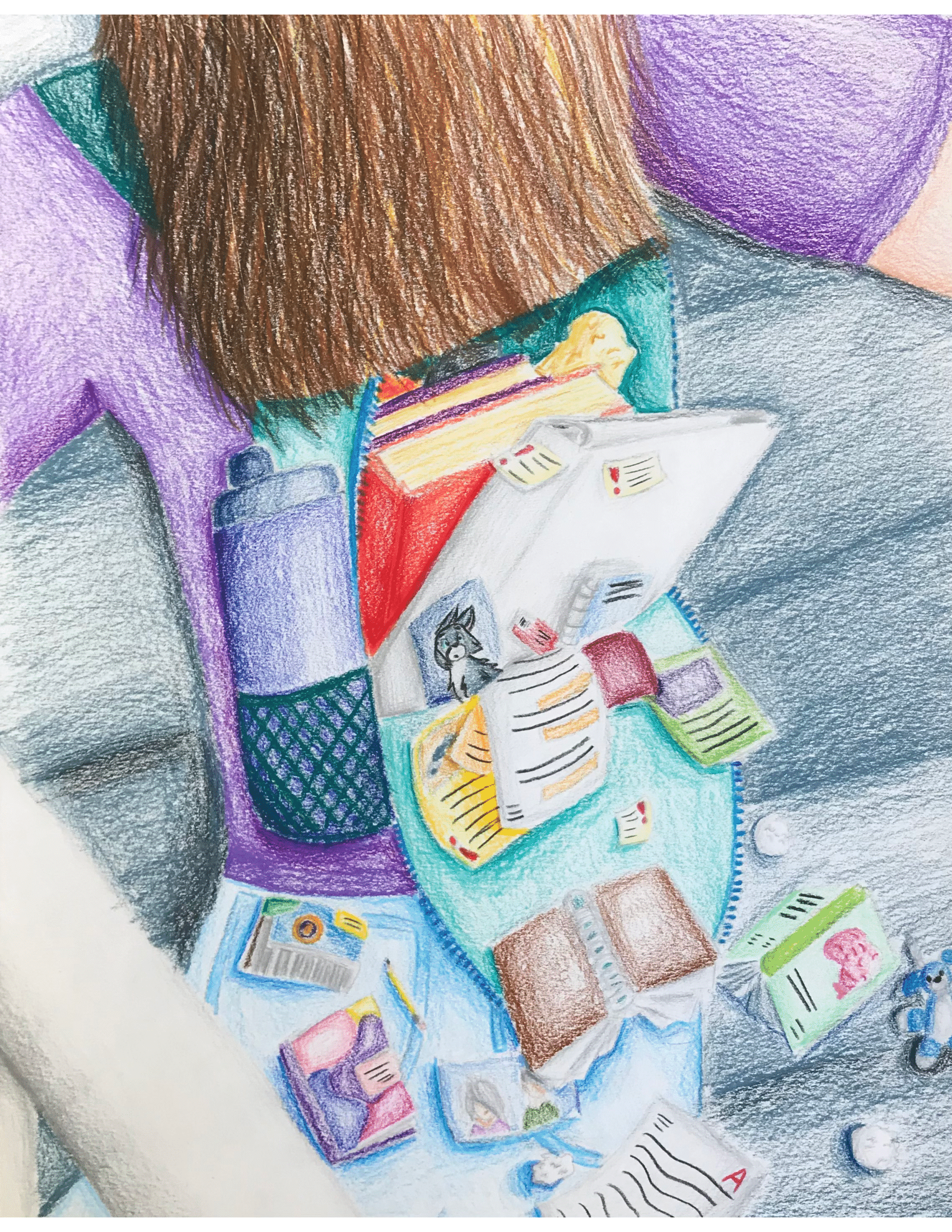 “A High Schooler’s Backpack demonstrates how it can be overwhelming to be in high school, especially in the upperclassmen years. As hard as it is, it is important to keep going and trying your best.”