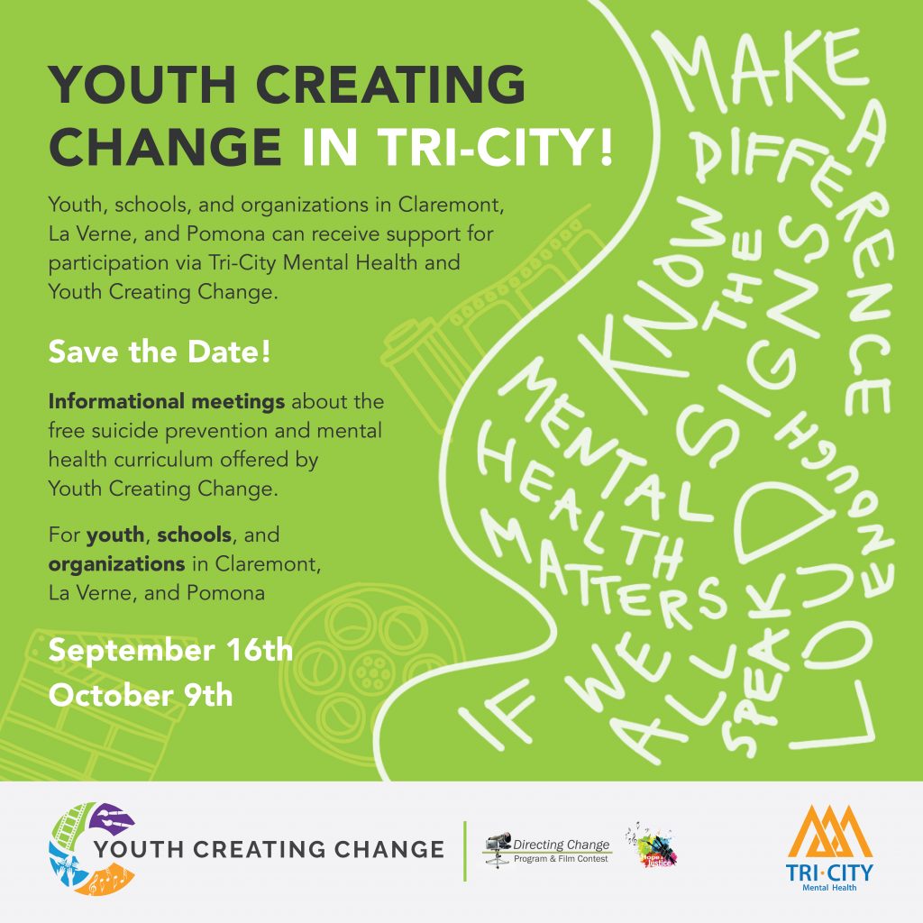 Interested in participating this year? Join a virtual information session to learn how you can get involved with Youth Creating Change in Tri-City this year, and the local resources available to support you. Staff from Youth Creating Change and Tri-City Mental Health will be available to answer questions and provide support as you get started.