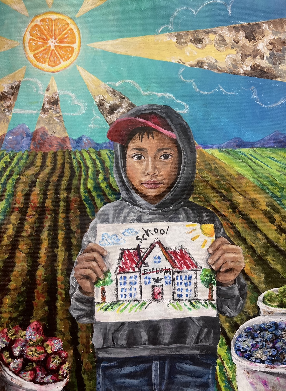 - First Place Hope & Justice: “Fruit Fields” by Andrea Dorantes